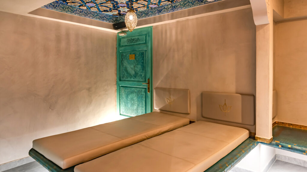 - Gommage traditionnel au gant de Kessa et savon noir à l’eucalyptus